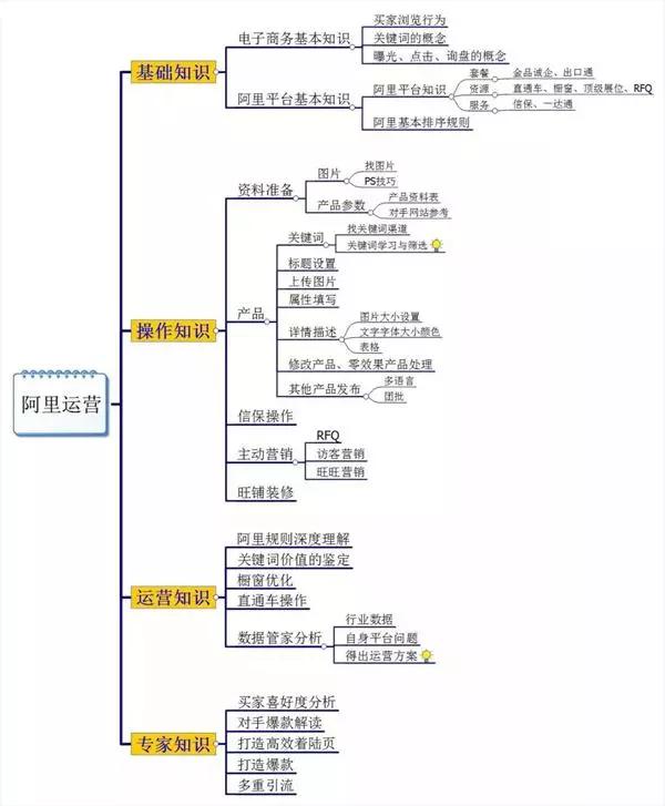 阿里國際站運(yùn)營,需要的是清晰的運(yùn)營思路和營銷技巧,前者能讓我們清楚地把握運(yùn)營方向,后者能讓我們的運(yùn)營想法實(shí)踐成為可能。為了便于各位小伙伴清楚地了解阿里國際站運(yùn)營思路,小編用了一張思維導(dǎo)圖更好地幫助大家了解。