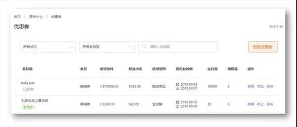 Step1:進(jìn)入營銷中心>優(yōu)惠券>創(chuàng)建優(yōu)惠券