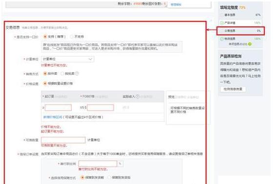如下為“交易信息”尚未填寫,找到對應(yīng)的位置,填寫完整信息即可。