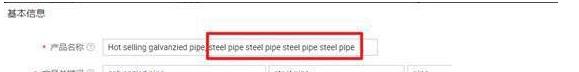 優(yōu)化思路:如下圖,關(guān)鍵詞steel pipe很頻繁的出現(xiàn)在產(chǎn)品標(biāo)題內(nèi),這樣系統(tǒng)就會(huì)識(shí)別為堆砌,因?yàn)橐?/span>多余steel pipe去除即可 。
