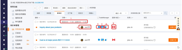大家收到詢盤通知后一般都會進入商機列表頁,可以通過列表頁提供的信息對買家有個初步印象