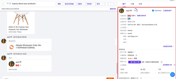 以上就是在商機列表頁可以獲取到的基礎(chǔ)買家信息了,可以幫大家在心里做個預(yù)判,更詳細的判斷我們需要點進到詢盤詳情頁來看了