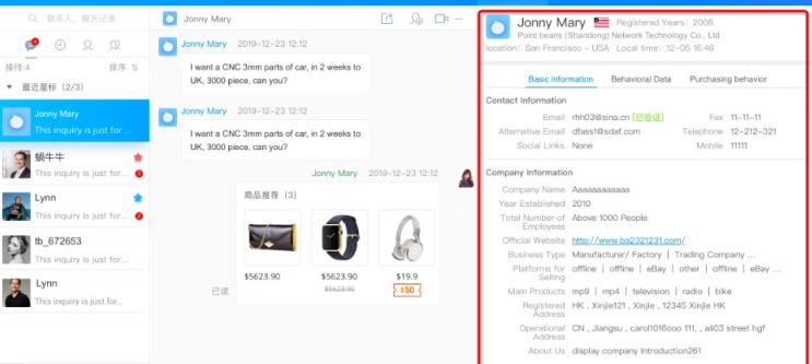 TM右側(cè) & 詢盤詳情頁右側(cè)“客戶”列表
