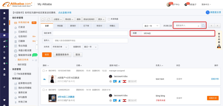 2.標(biāo)題搜索,快速篩選出當(dāng)天需要跟進(jìn)的詢盤