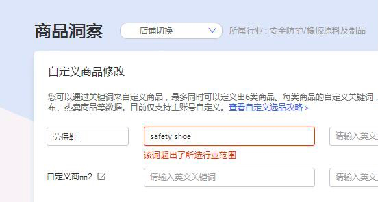 有客戶反饋,行業(yè)版商品洞察的自定義時,發(fā)現(xiàn)“該詞超出了所選行業(yè)范圍”,如下,怎么破?