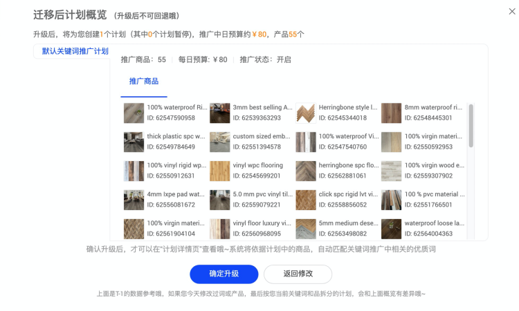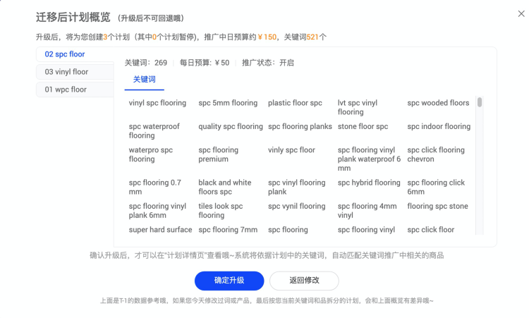 升級流程(灰度中,部分客戶會在關(guān)鍵詞計劃里看到該彈窗)