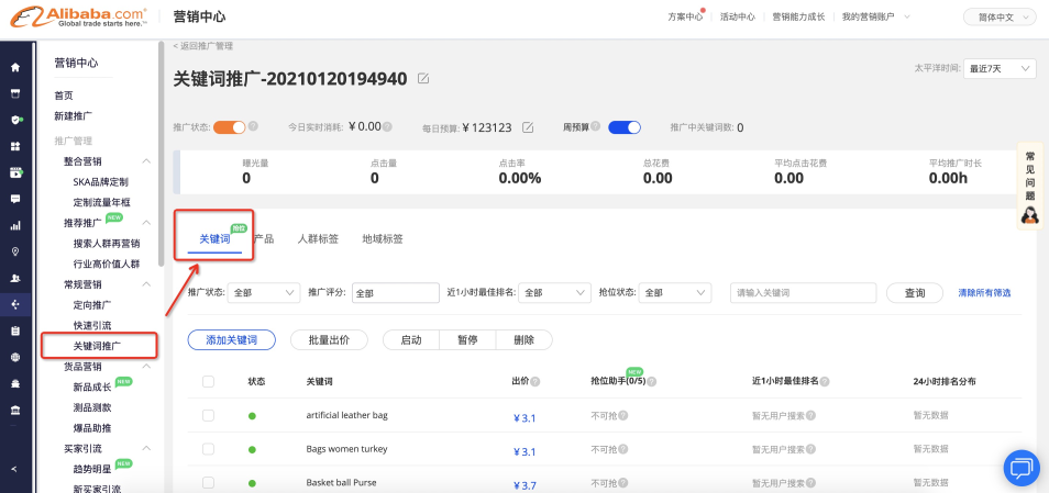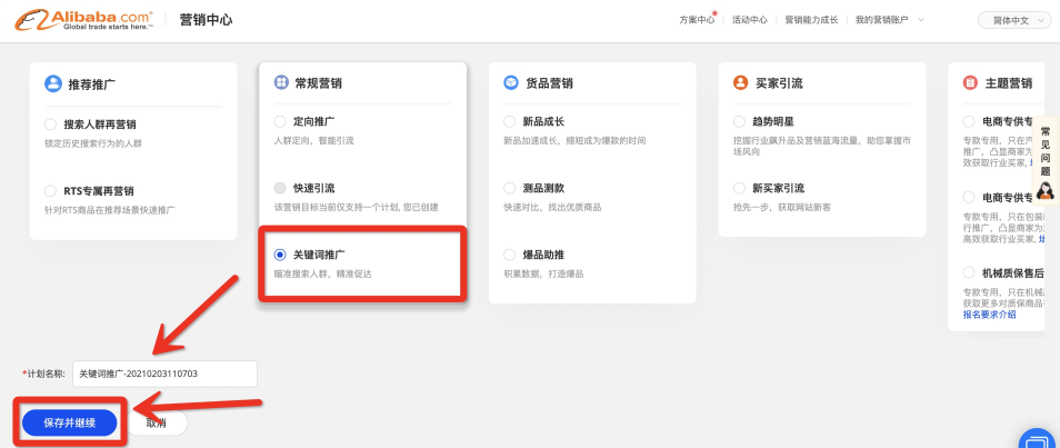7、支持新建關(guān)鍵詞計劃進行推廣;