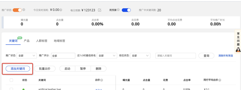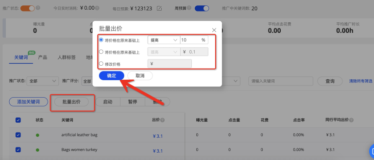 列表中關(guān)鍵詞出價調(diào)整與設(shè)置: