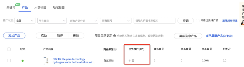 如您點擊【只看優(yōu)選推廣品】,將僅展示您當(dāng)前計劃的5個優(yōu)先推廣品;