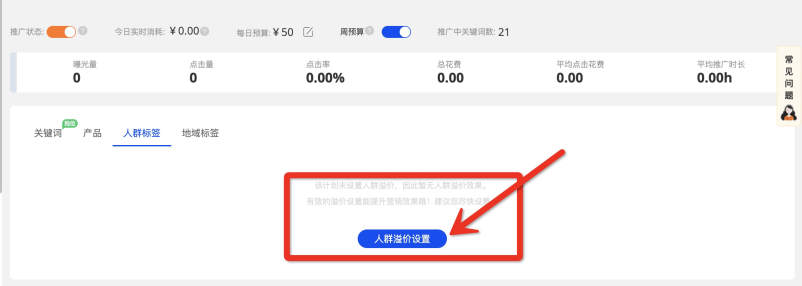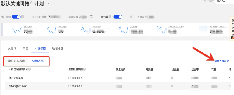 如您需要調(diào)整人群與地域溢價設(shè)置,點擊右側(cè)【調(diào)整人群溢價即可】