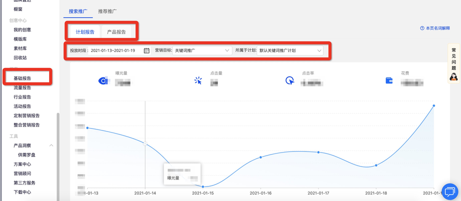 您可以通過基礎(chǔ)報告:查看關(guān)鍵詞推廣計劃的匯總數(shù)據(jù)、產(chǎn)品數(shù)據(jù);